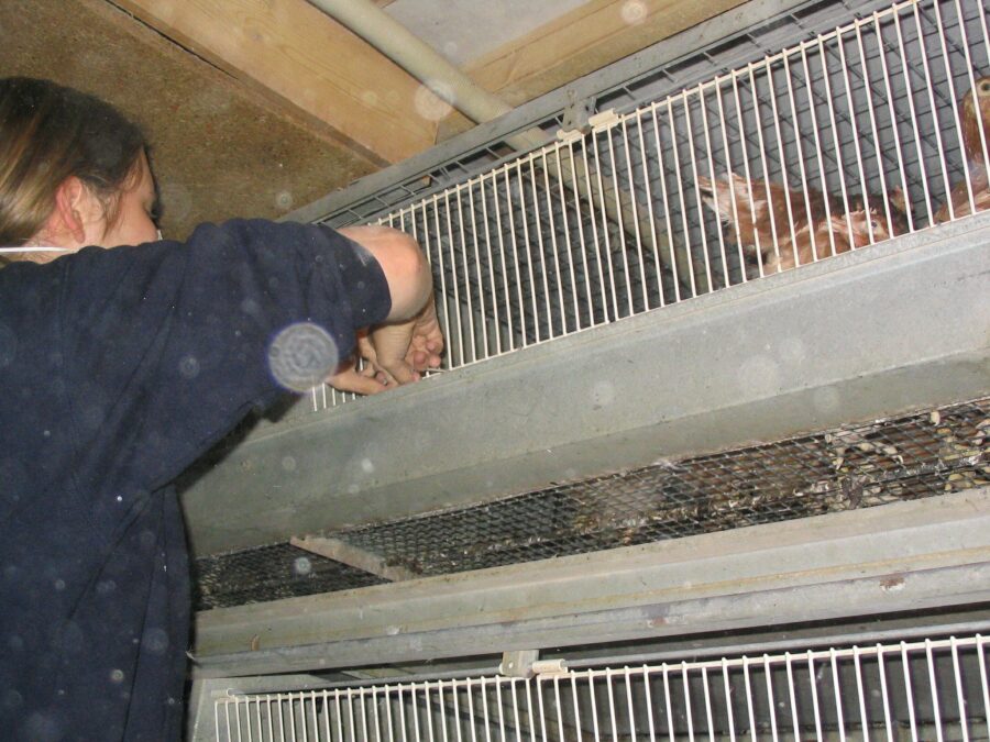 | Befreiung von vier Hennen aus einer Legebatterie. Näheres siehe Pressemitteilung. | Die Hennen sehen zum ersten Mal Sonne und Gras. | Befreiung von 36 erst wenige Wochen alten Hühnern aus einer "Aufzuchtanlage", näheres siehe Pressemitteilung | Befreiung von 15 Hennen aus einer "Bodenhaltung" und einer ... | "Legebatterie", näheres siehe Pressemitteilung | Aus der Bodenhaltung befreites Huhn zwei Wochen später. | Befreiung von vier Entenküken aus einer "Entenmast" mit Freilandhaltung, näheres siehe Pressemitteilung. | Zwischenstation: unter einer Wärmelampe. | Nicht Tiertransporte sind das Problem ... | Geschafft - die Entenküken verlassen die Transportbox und erkunden die neue Umgebung. | Weitere Befreiung aus einer "Entenmast" mit Freilandhaltung gut zwei Wochen später, näheres siehe Pressemitteilung. | Befreiungen 2008 | Befreiungen 2007 | Befreiungen 2006 | Befreiungen 2005 | Befreiungen 2003 | Befreiungen 2002 | Befreiungen 2001 | Befreiungen 20. Jahrhundert, befreite Tiere, Sterben in den Gängen | ||||||||||||||||||||||||||||||||||||||||||||||