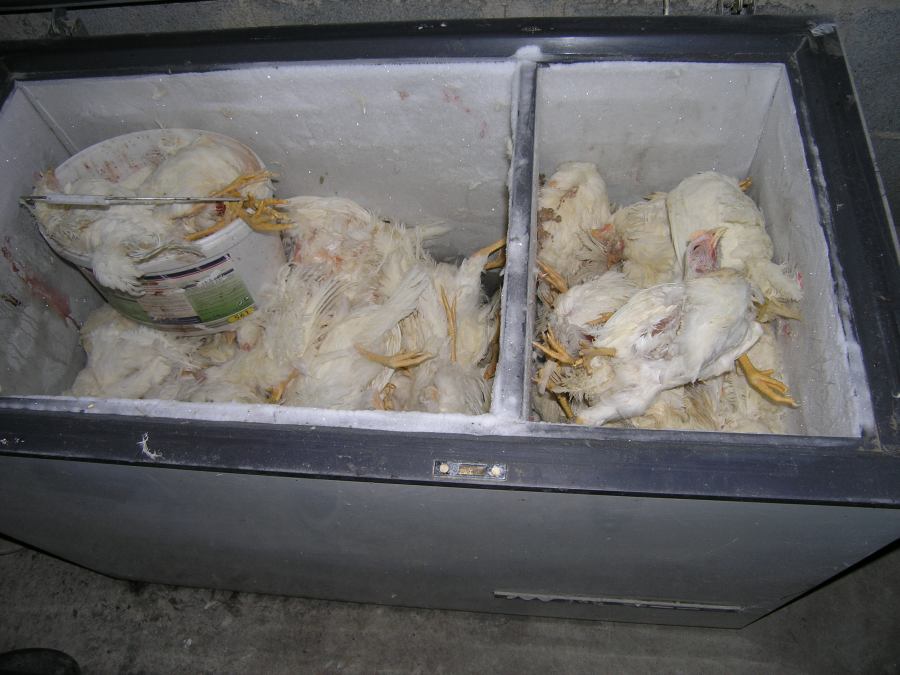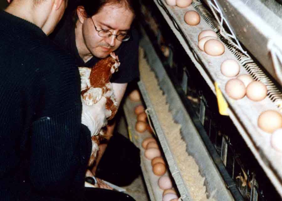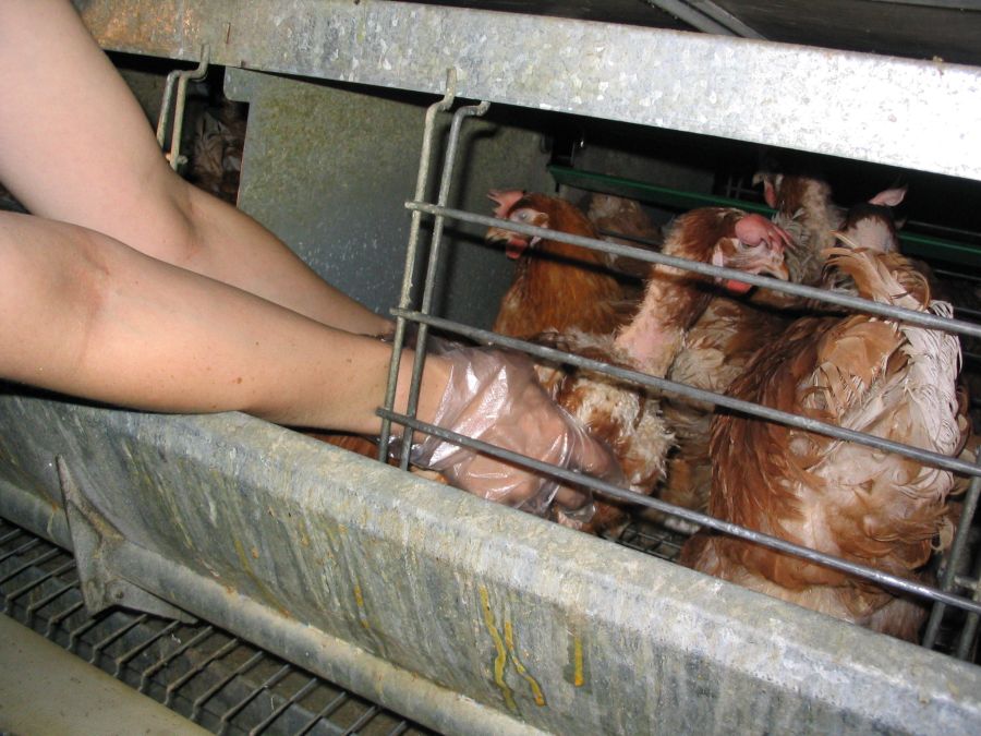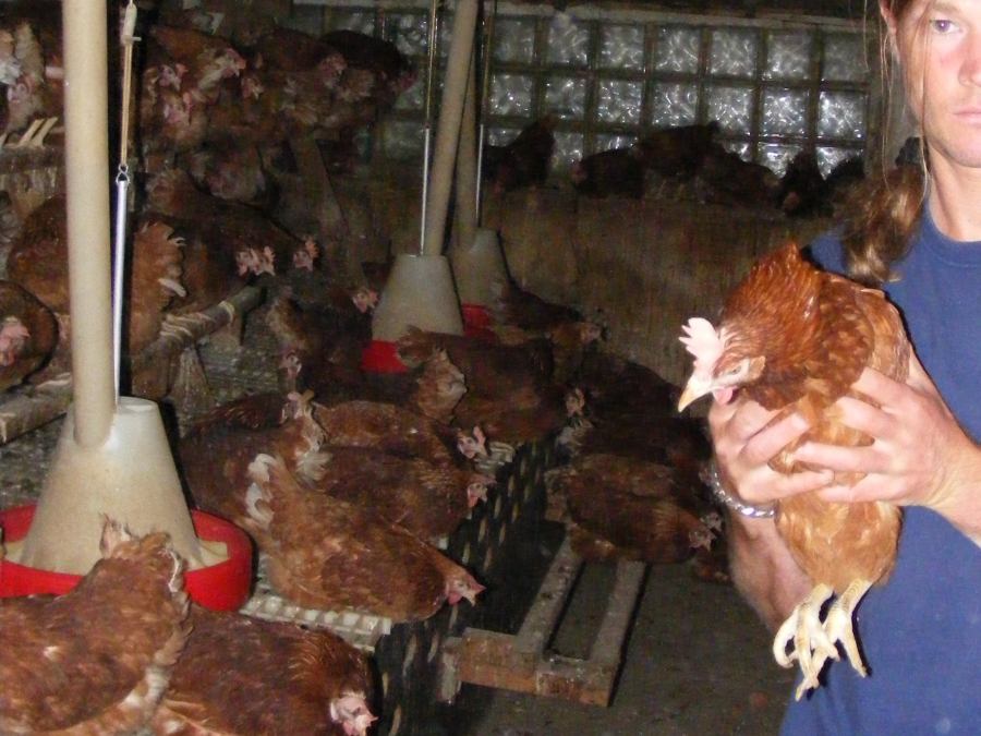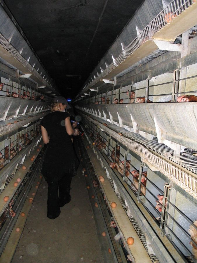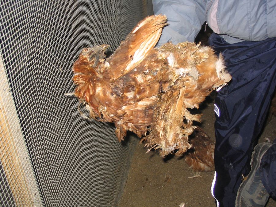 | Befreiung von vier Hühnern aus einer "Legehennen-Aufzuchtanlage". Näheres siehe Pressemitteilung. | Befreiung von acht Hühnern aus einer Käfighaltung. Näheres siehe Pressemitteilung. Weitere Bilder aus der Anlage unter "Legebatterien". | Hoher Staubgehalt in der Luft | Hühner aus der Bodenhaltung ... | Brucheier aus einem Abfalleimer ... | ... und Hühnerleichen werden mitgenommen. Näheres siehe Pressemitteilung. | Hennen aus der Legebatterie, siehe Pressemitteilung. | Etwa 8% der Hühner in den Käfigen waren Hähne. | Befreiungen 2008 | Befreiungen 2007 | Befreiungen 2006 | Befreiungen 2004 | Befreiungen 2003 | Befreiungen 2002 | Befreiungen 2001 | Befreiungen 20. Jahrhundert, befreite Tiere, Sterben in den Gängen | ||||||||||||||||||||||||||||||||||||||