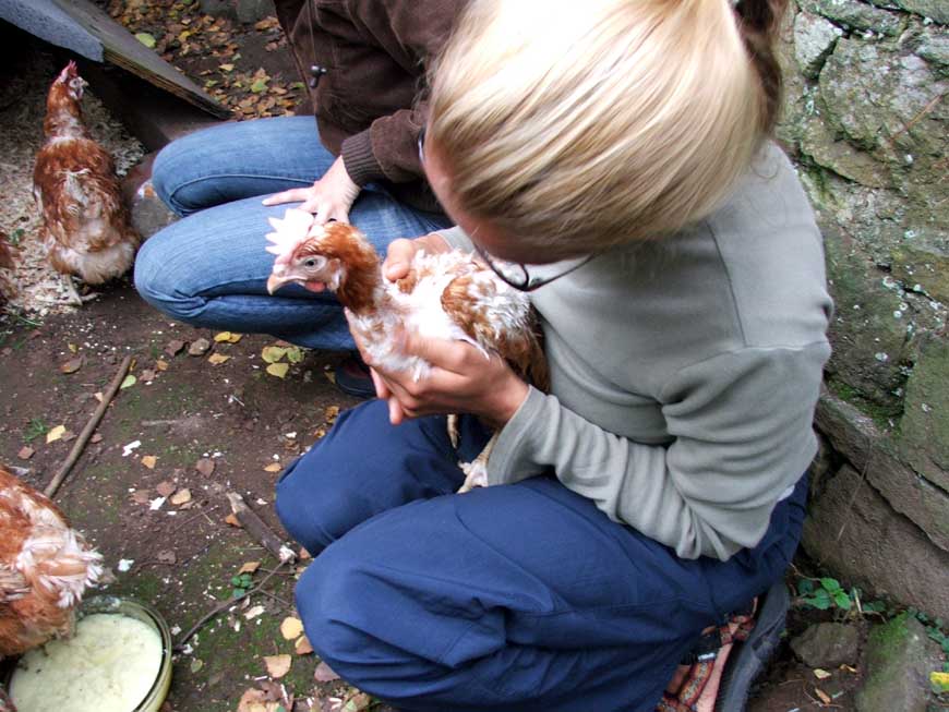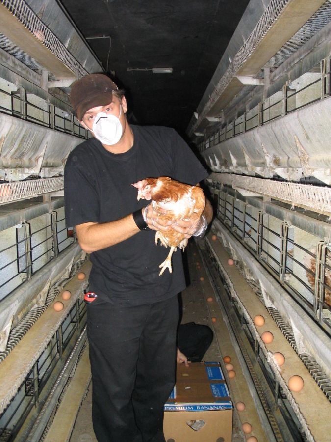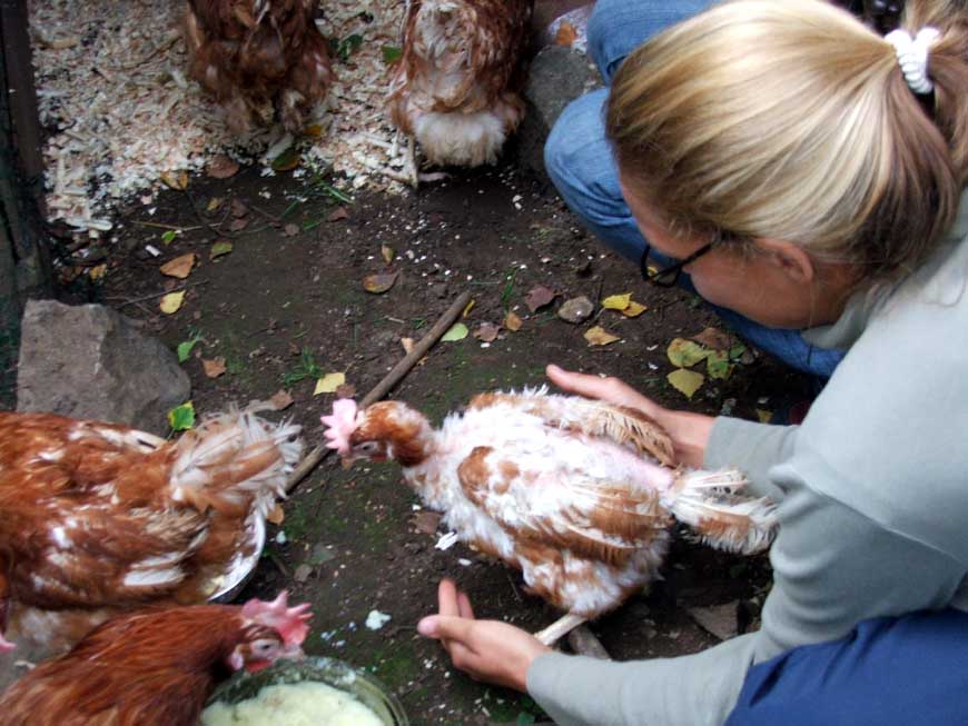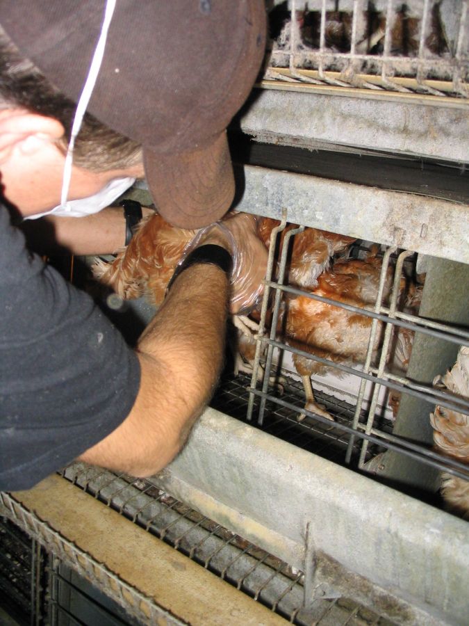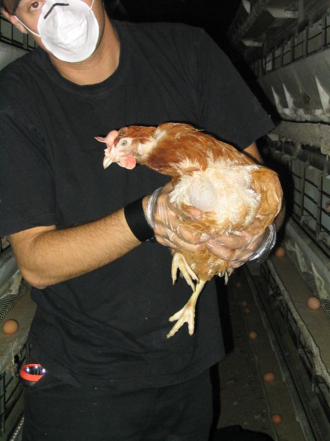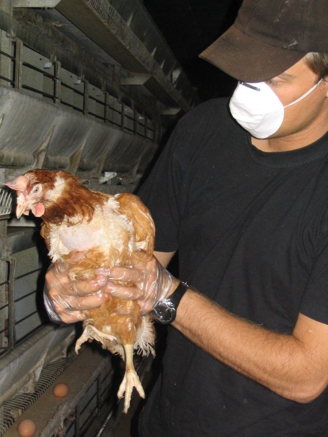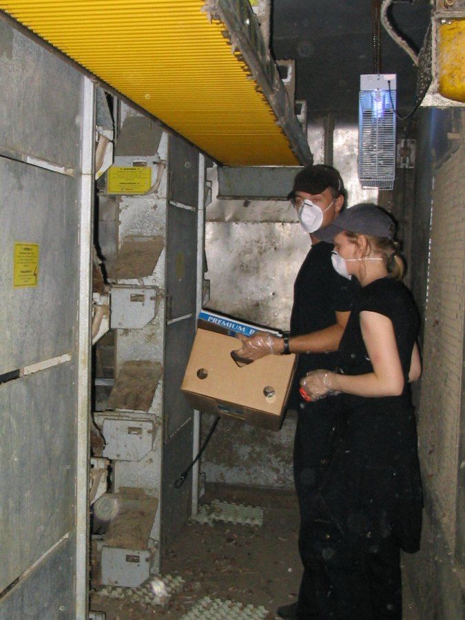 | Befreiung von vier Hühnern aus einer "Legehennen-Aufzuchtanlage". Näheres siehe Pressemitteilung. | Befreiung von acht Hühnern aus einer Käfighaltung. Näheres siehe Pressemitteilung. Weitere Bilder aus der Anlage unter "Legebatterien". | Hoher Staubgehalt in der Luft | Hühner aus der Bodenhaltung ... | Brucheier aus einem Abfalleimer ... | ... und Hühnerleichen werden mitgenommen. Näheres siehe Pressemitteilung. | Hennen aus der Legebatterie, siehe Pressemitteilung. | Etwa 8% der Hühner in den Käfigen waren Hähne. | Befreiungen 2008 | Befreiungen 2007 | Befreiungen 2006 | Befreiungen 2004 | Befreiungen 2003 | Befreiungen 2002 | Befreiungen 2001 | Befreiungen 20. Jahrhundert, befreite Tiere, Sterben in den Gängen | ||||||||||||||||||||||||||||||||||||||