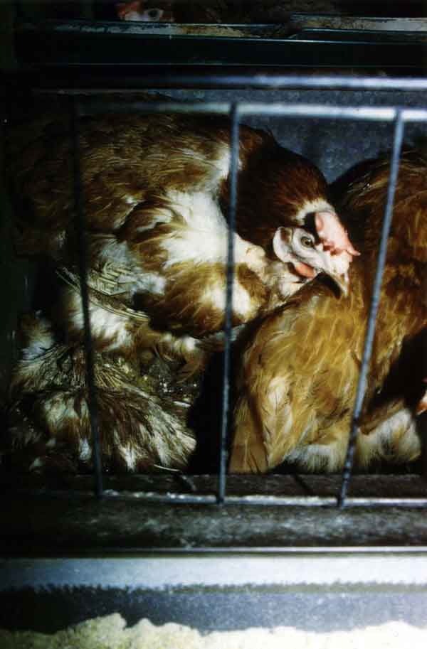 | Legebatterien | Verdursten in den Gängen | Mülltonnen | Bodenhaltung | Aufzuchtanlage | Gänsemast | Truthuhnmast | "Kleinmarkthalle" Frankfurt | Auslegeaktionen |