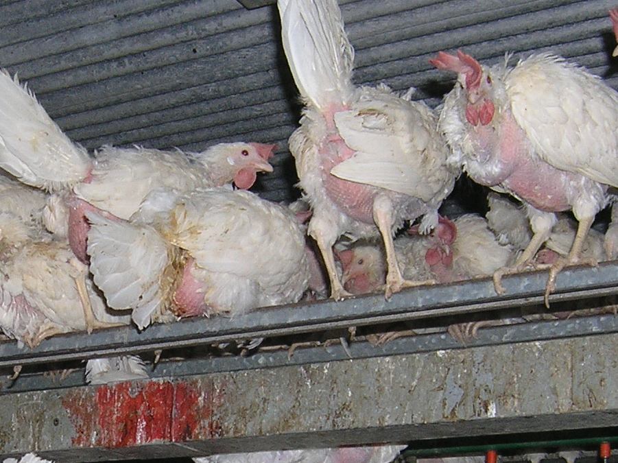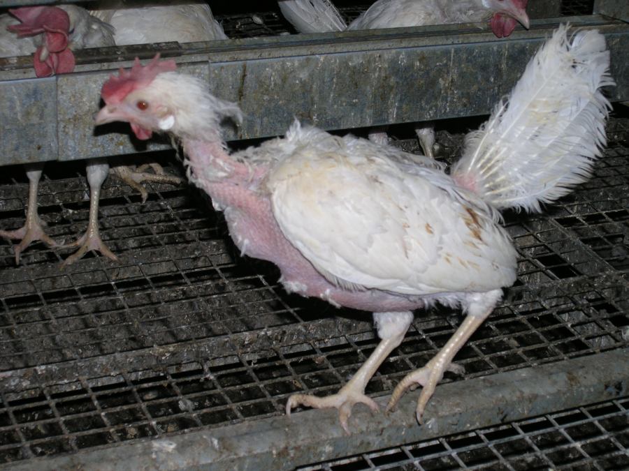 Zudem sind Hühner qualgezüchtet, so dass die Hennen bis zu dreihundert Eier im Jahr legen, während die Stammform der "Legehennen", die Bankivahühner, höchstens zwanzig Eier im Jahr legen. Diese leben in Gruppen von etwa zwanzig Tieren zusammen, während die weit höhere Gruppengröße in der Eierproduktion zu Soziopathien (z.B. Federpicken bis hin zu Kannibalismus) führt. Das bedeutet, dass sie sowohl aufgrund der Selektionszüchtung als auch durch die Gefangenhaltung leiden.