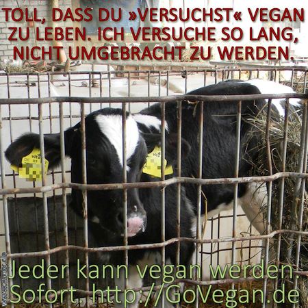 Anlässlich des Welttierschutztags 2014 startete eine neue Kampagne gegen Tierschutz und Unveganismus. Grundvoraussetzung für Tierrechte ist es, vegan zu leben. Wohlgemerkt vegan zu leben, nicht "fast vegan", nicht "auf dem Weg" zum Veganismus, nicht es für ein paar Tage "versuchen", nicht sich nur "vegan ernähren", sondern vegan werden.