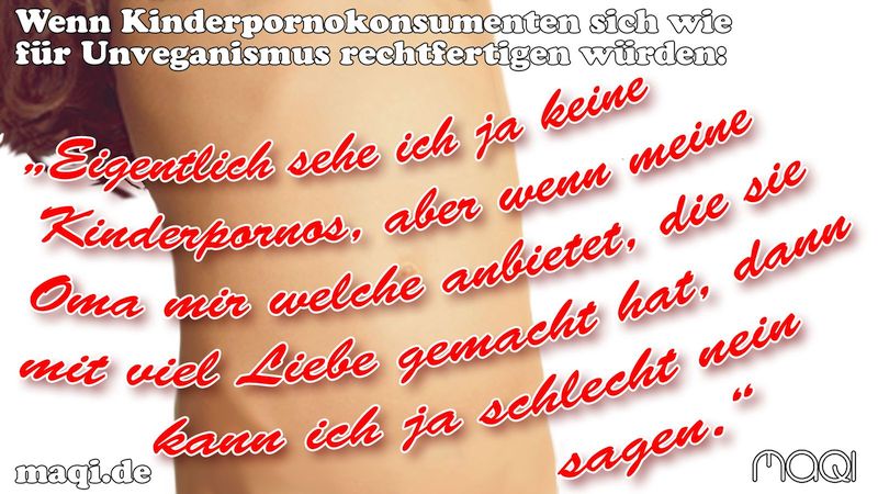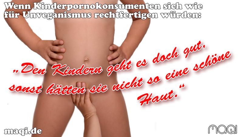, die die Absurdität unveganer Rechtfertigungsversuche demonstriert.